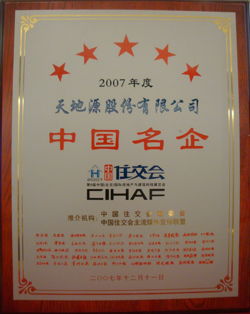 获得“2007CIHAF中国名企”称号