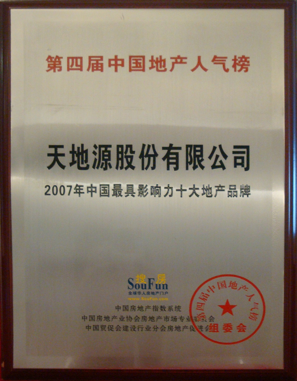 第四届中国地产人气榜 2007年中国最具影响力十大地产品牌