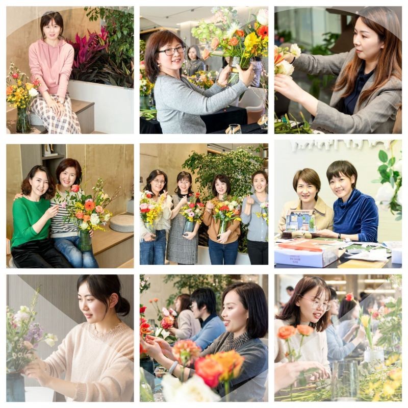 活动分为现场美学实践、冷餐体验、互动合影等环节,公司特邀了专业老师就插花、香薰桌摆、小木屋手工制作技巧作了详细讲解,并现场演示。在老师的指导下,大家用自己的巧手制作出了一件件色彩斑斓、独具匠心的花艺作品、装扮出一件件清香四溢的香薰桌摆和一个个精致的小木屋。